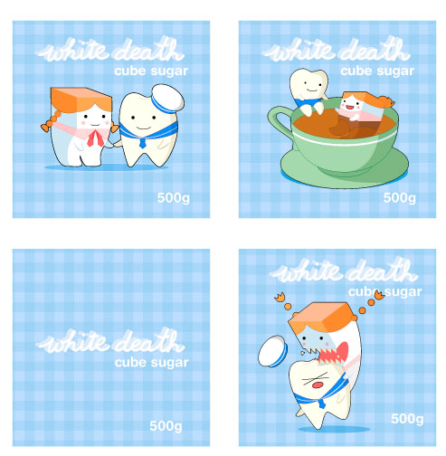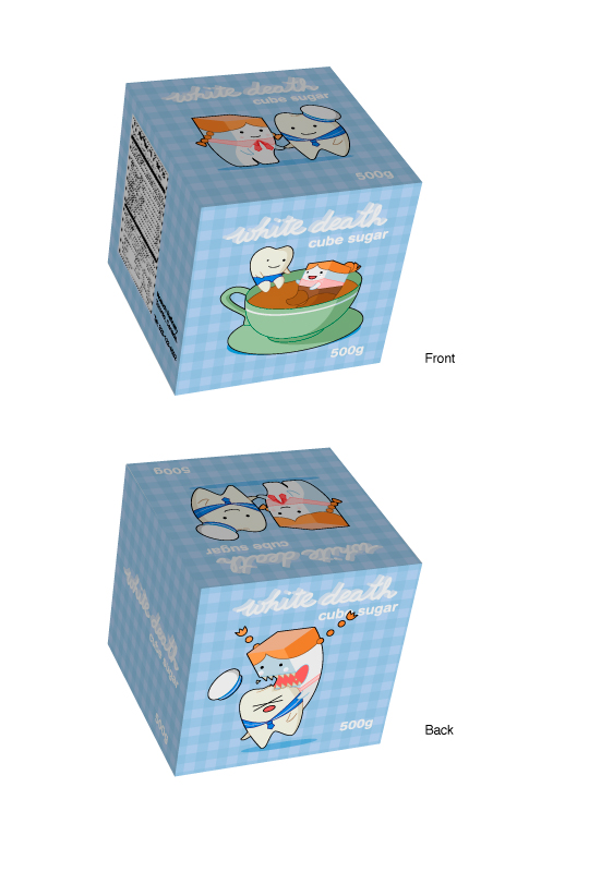 WHITE DEATH Character and packaging design for cube sugar, named after the Russian nickname for the cavity-inducing goodness.